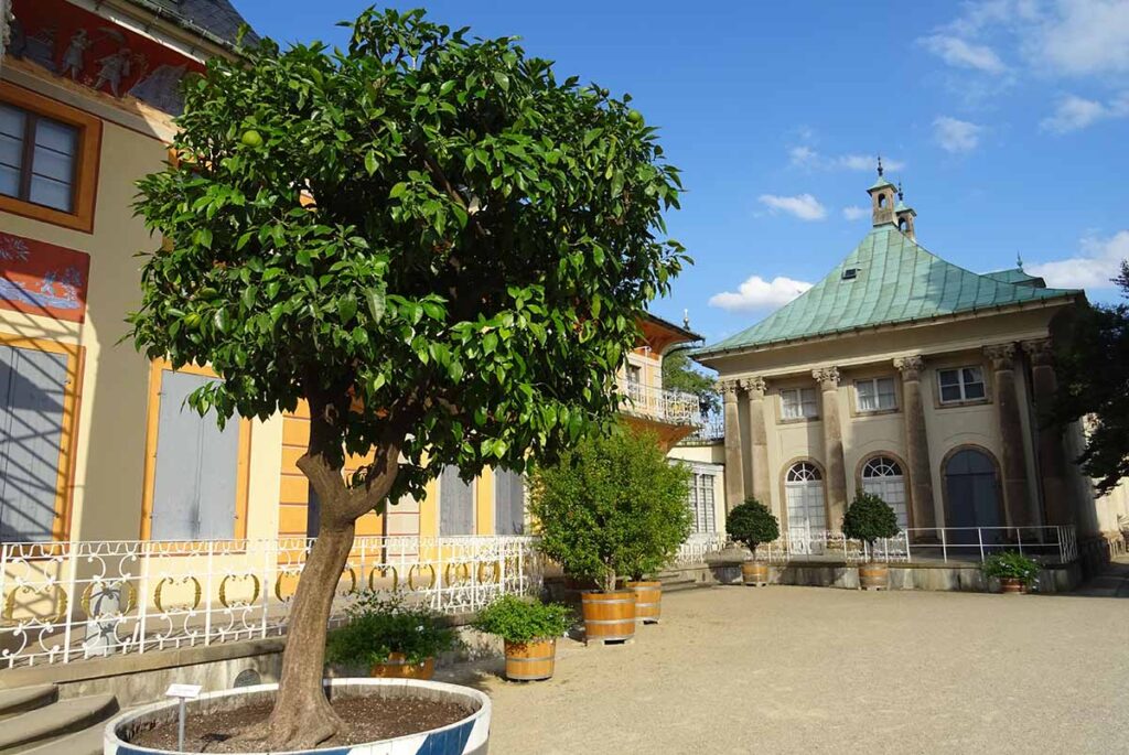 Die Sommerresidenz der Wettiner – Schloss Pillnitz – ist bekannt für ihre schöne landschaftliche Lage und ihren zauberhaften großen Park. So mancher Kurfürst und König folgte hier seiner Inspiration durch die Natur und so entstand im Laufe der Zeit ein einzigartiges Paradies aus ungewöhnlichen, wunderschönen und oft auch essbaren Pflanzen und Bäumen.